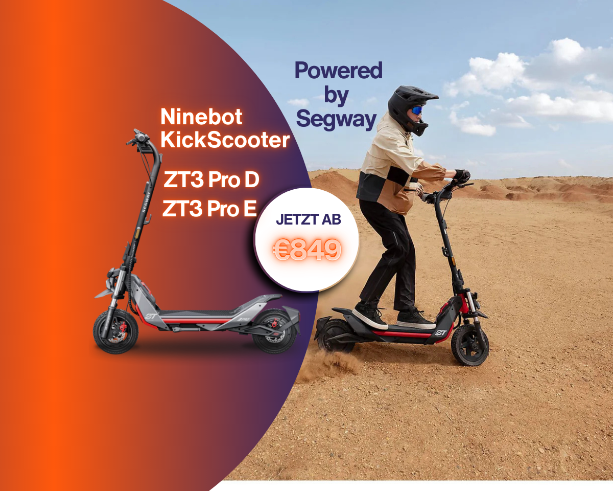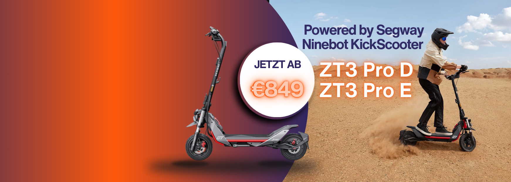 Ninebot KickScooter ZT3 Pro E Straßenzulassung nur für Österreich und für die Schweiz! (25 km/h). Ninebot KickScooter ZT3 Pro D für Deutschland!